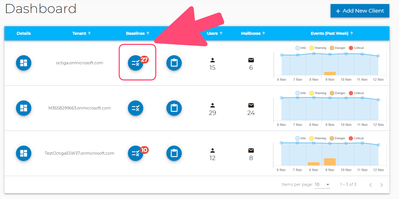 - Click on the Baselines Button for that tenant
